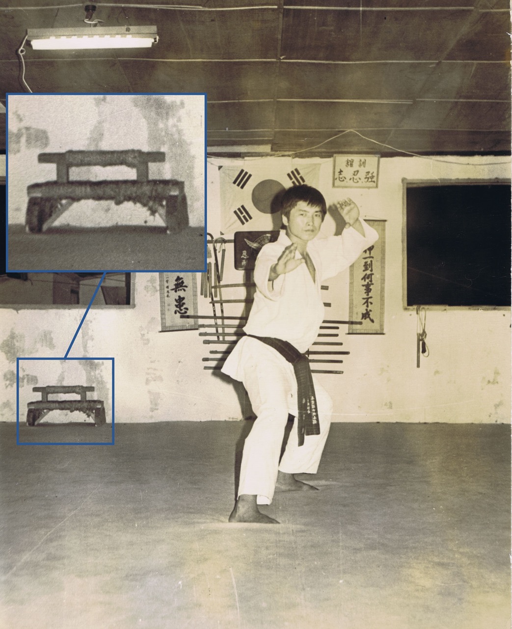 Par exemple, sur cette photo du GM Lee Chang soo, datant de 1975, on découvre et analyse les outils utilisés par les maîtres coréens pour renforcer les armes naturelles du corps.